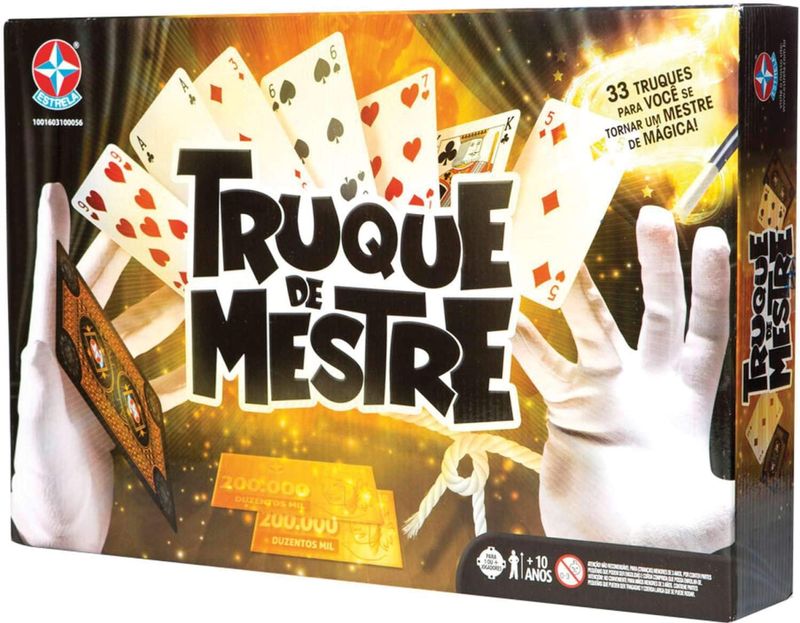 A criançada vai aprender a dar um show de mágica com o Conjunto de Mágicas Truque de Mestre da Estrela. Um kit completo para a garotada fazer truques incríveis para a família e os amiguinhos. O conjunto vem com baralho de cartas, acessórios para fazer mágicas e um manual de instruções.
