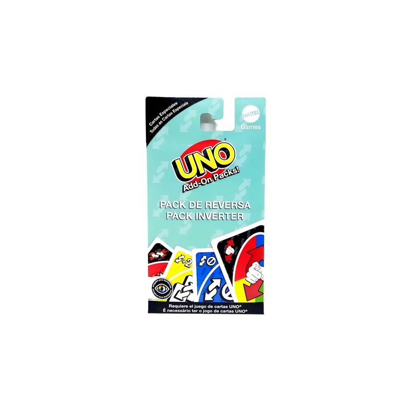 As cores podem variar entre as imagens mostradas acima e o produto. Imagens meramente ilustrativas.Este pacote de cartas pode ser adicionado a um baralho clássico de cartas UNO®, deixando o jogo ainda mais emocionante. Para utilizar, é necessário possuir o jogo de cartas UNO® clássico. O Pacote Inverter não apenas altera a direção da partida, como também introduz novas penalidades que aumentam o desafio e tornam cada rodada mais dinâmica e imprevisível.