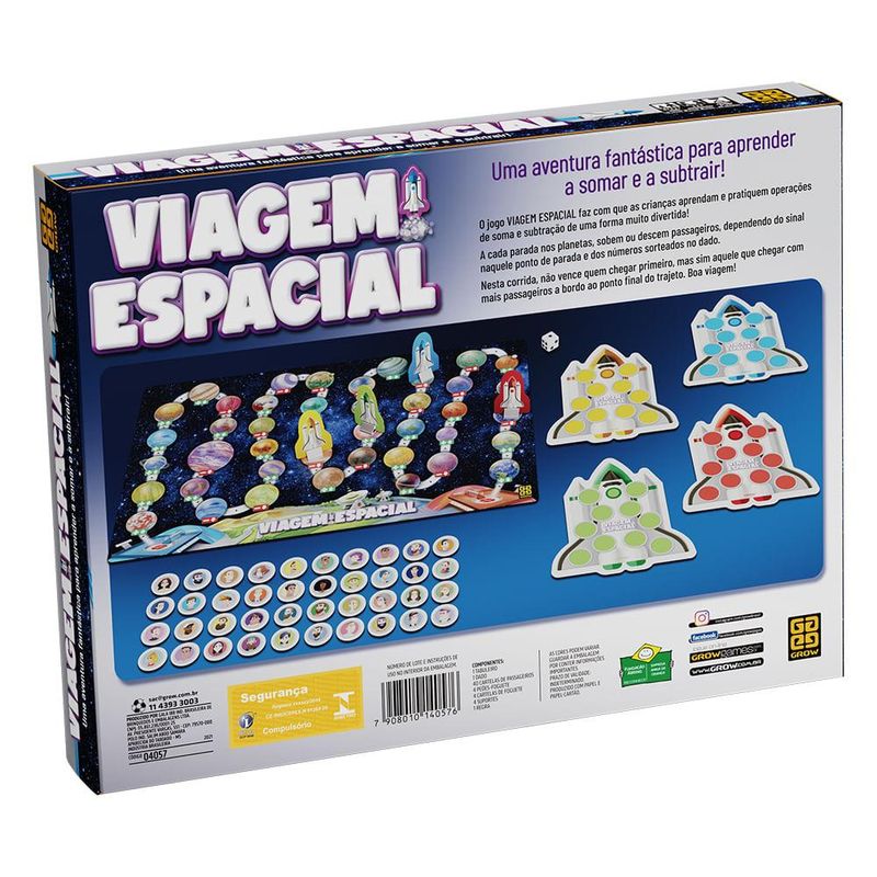 O Viagem Espacial é um jogo para crianças de 4 a 7 anos, e precisa ter entre 2 e 4 participantes. O objetivo é chegar ao final do tabuleiro com o maior número de passageiros. Para isso, você precisa jogar um dado para definir em qual planeta sua nave vai chegar.