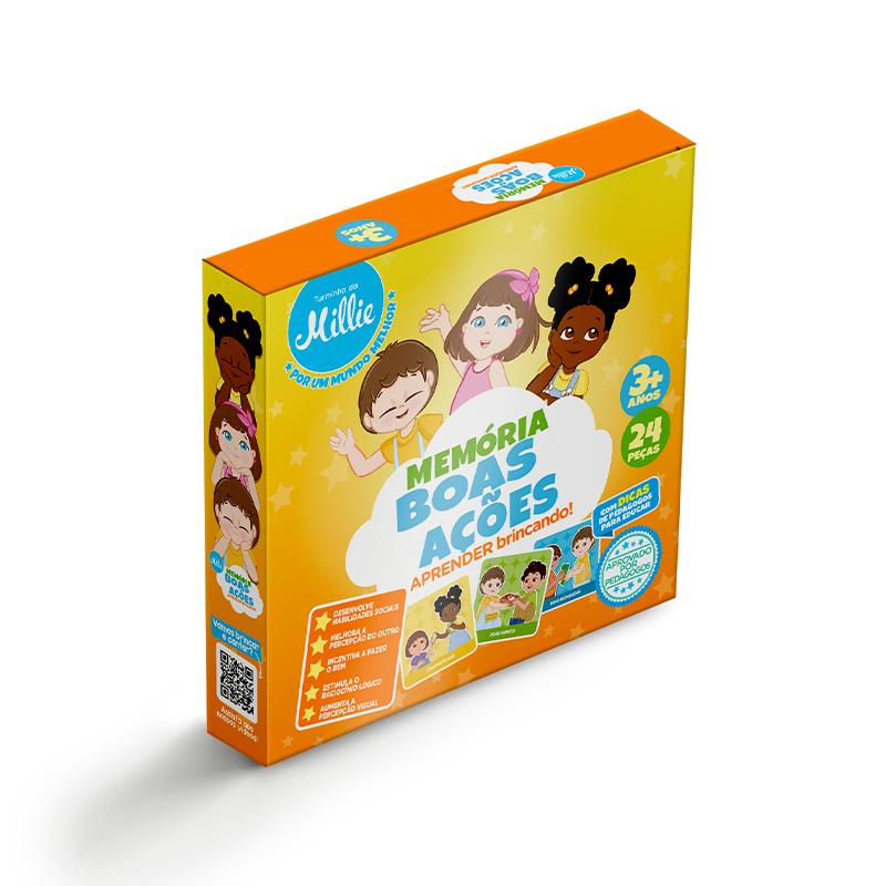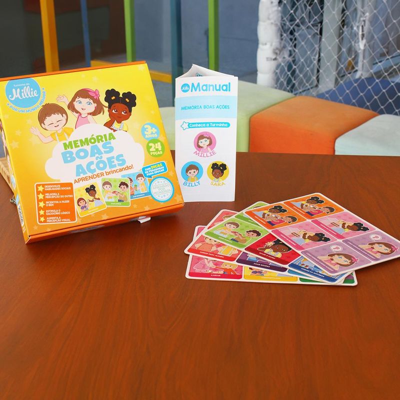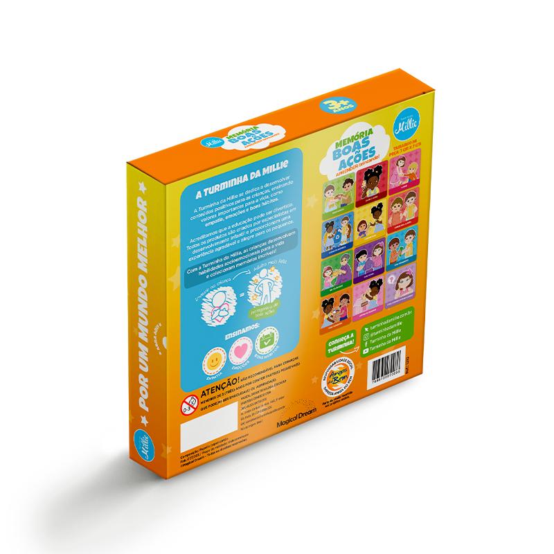 Apresentamos o empolgante Jogo de Memória Boas Ações, em que a diversão se combina com valores importantes. Um jogo educativo com 24 cartas grandes coloridas e ilustradas, mostrando os personagens da Turminha da Millie em ações positivas que ensinam sobre solidariedade, gentileza e empatia.