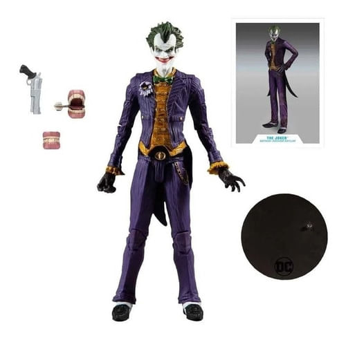 Arkham Asylum Joker é uma action figure baseada no estilo icônico do vilão da DC Comics. Com 22 articulações, o boneco acompanha acessórios além de cartão para colecionador com arte e biografia do personagem.