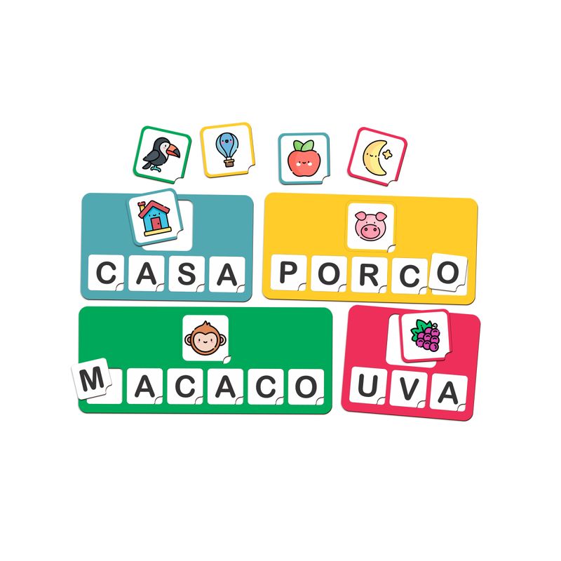 Contém 4 cartelas, 40 figuras e 36 letras.