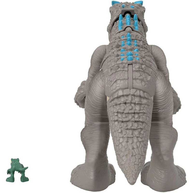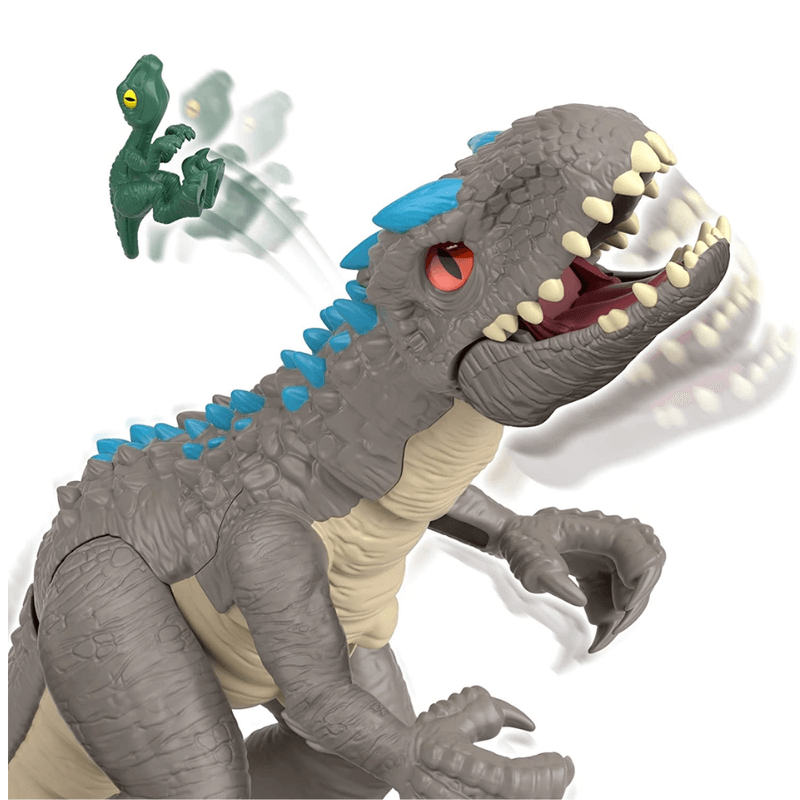 Recrie a ação dos filmes do Jurassic World e imagine novas histórias com o feroz e gigante Indominus Rex! Este feroz predador pode lutar contra até os dinossauros mais durões. Quando o Raptor pula nas costas do Indominus Rex, as crianças podem mover a cauda do dinossauro maior para vê-la bater e jogar o Raptor para longe. Imagine toda ação que vem a seguir!