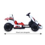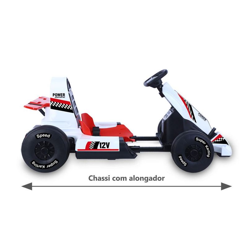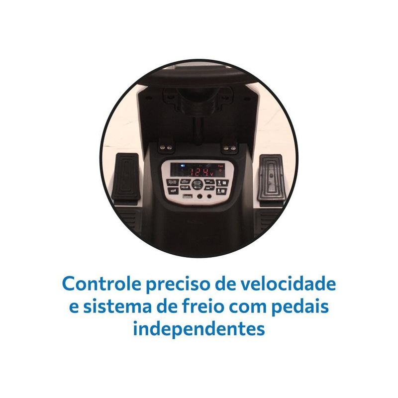 Duas formas de uso: Permite a criança pilotar ou ao adulto controlar com o controle remoto Chassi com regulagem de comprimento