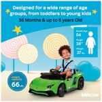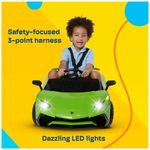 Vem com faróis LED, buzina, sons de motor e portas hidráulicas que balançam como um Lamborghini real. Além disso, há rádio integrado, cabo AUX, porta USB e Bluetooth que permite às crianças ouvir suas músicas favoritas enquanto jogam.