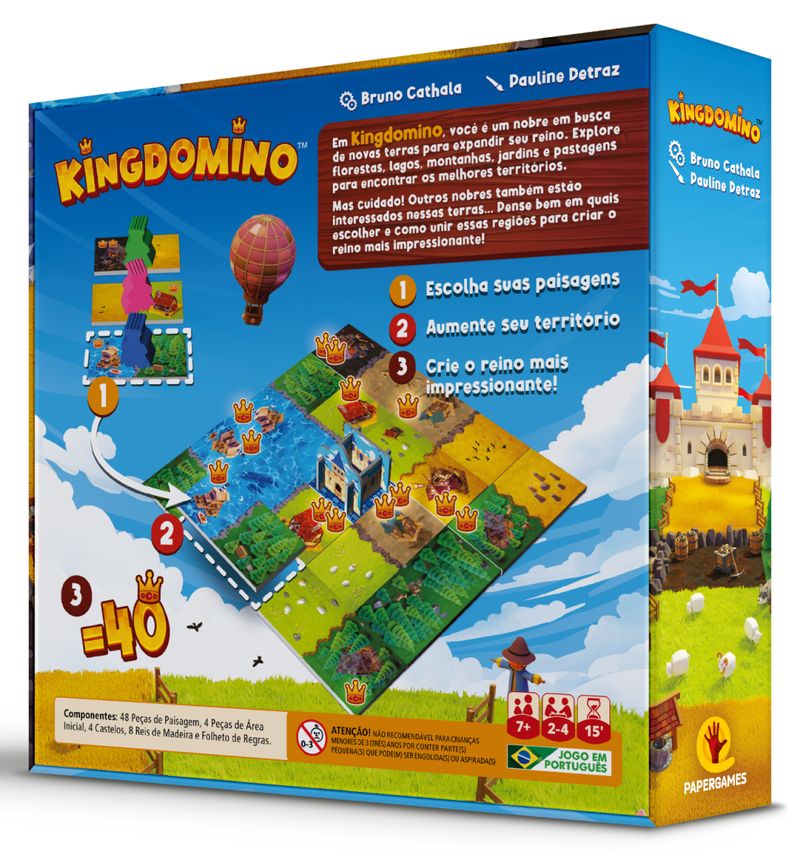 Em Kingdomino, você é um nobre em busca de novas terras para expandir seu reino. Explore florestas, lagos, montanhas, jardins e pastagens para encontrar os melhores territórios.