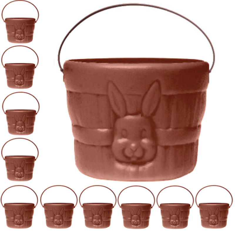 Essa cesta para chocolate e doces tem alça e uma estampa em alto-relevo de Coelhinho, com um belo acabamento e fabricado em plástico esse pote é presenteável pode ser usado para fazer kits e cestas de Páscoa.