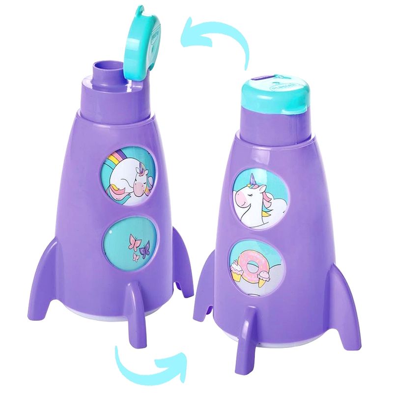 Kit com 2 Garrafinhas de Foguete que Gira de Unicórnio - Plasútil