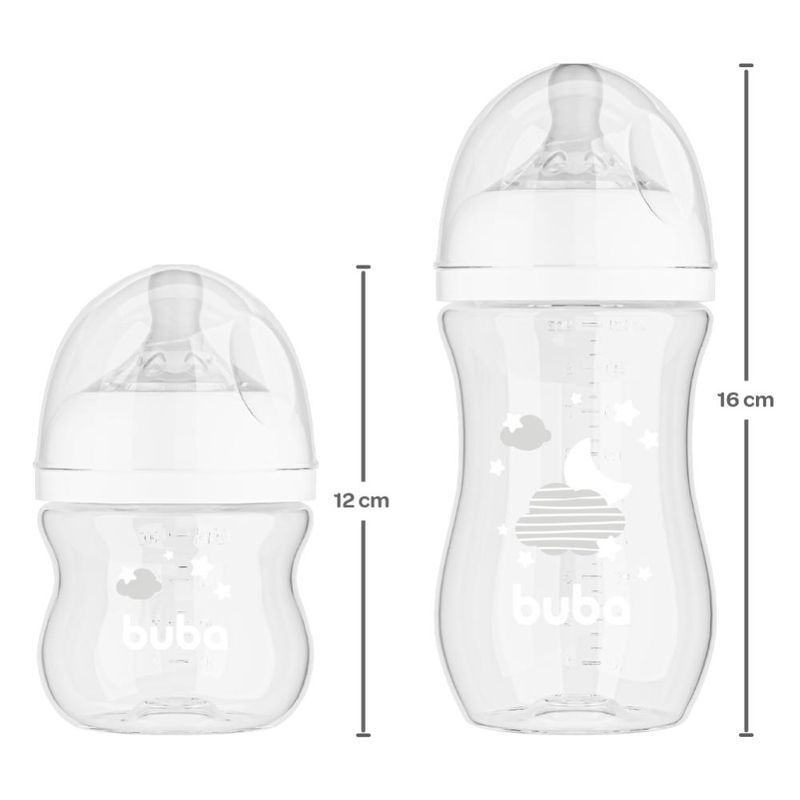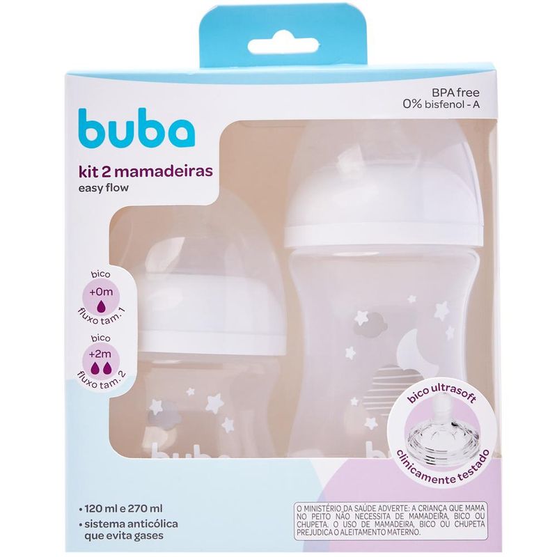 Kit 2 Mamadeiras Buba Easy Flow Nuvem 120-270ML Branco