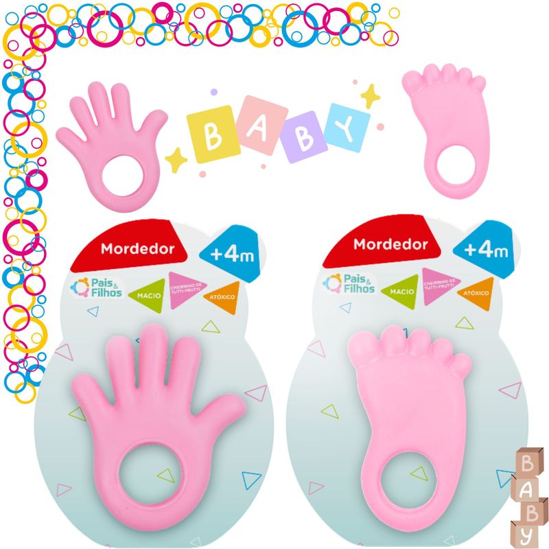 Mordedor em Vinil Formato Pezinho e Mãozinha com Cheirinho – Cor Rosa O Mordedor Pezinho e Mãozinha da Pais e Filhos é um acessório funcional desenvolvido para aliviar o desconforto causado pelo nascimento dos dentinhos. Com design exclusivo em formato de pé e mão, este mordedor na cor rosa é feito de vinil de alta qualidade, oferecendo durabilidade e conforto. Indicado para crianças a partir de 4 meses, ele proporciona alívio para a gengiva sensível, auxiliando no processo de dentição. Dimensões da embalagem: Comprimento: 12,5 cm Largura: 1,7 cm Altura: 19,5 cm Cuidados recomendados: Não ferver. Não esterilizar em micro-ondas ou lavar em lava-louças. Higienizar antes de entregar à criança. Limpar com pano limpo umedecido com álcool 70%.