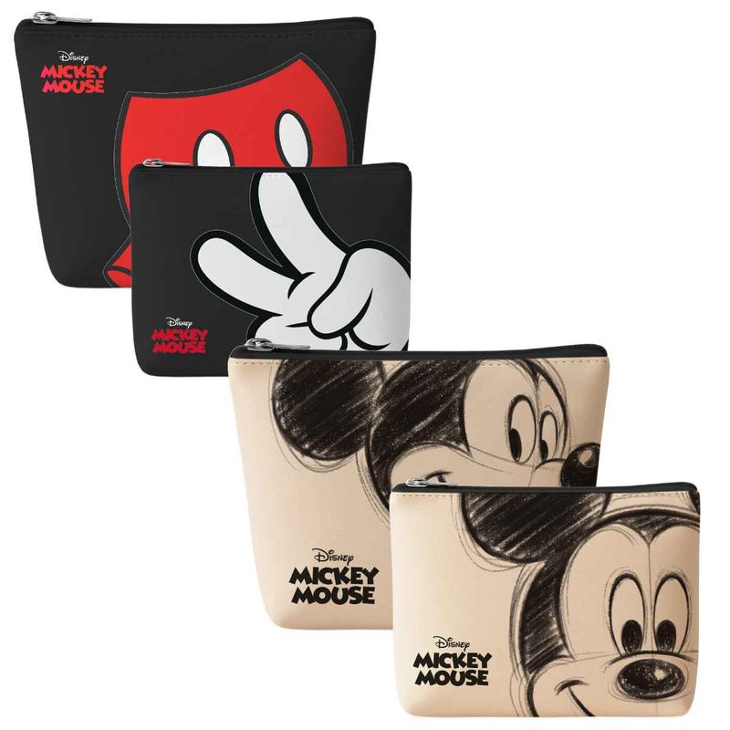 Kit 2 Bolsas Necessaire Mickey Originais Disney - perfeitas para organizar maquiagem, acessórios, higiene pessoal e itens de viagem com praticidade e muito estilo.