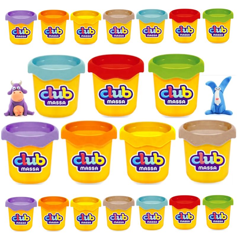 Kit com 20 Potes de Massinha de Modelar Infantil Atóxico Club Massa Usual Atacado Revenda Lembrancinha de Festa Infantil para Sacolinha Surpresa