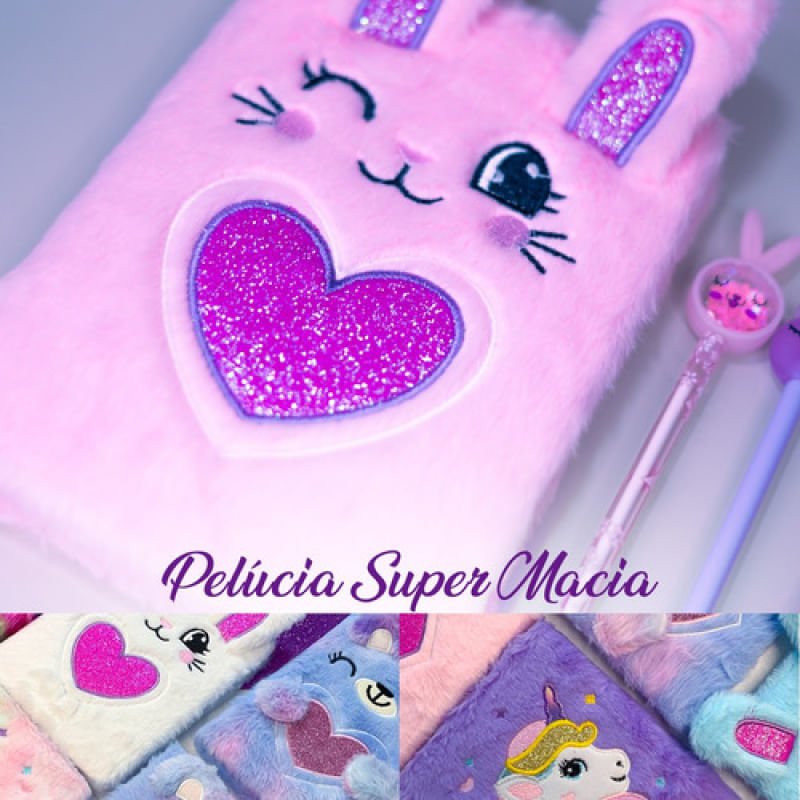 1 Caderno Kawaii de Pelúcia ( 21.5 x 14.8 cm)