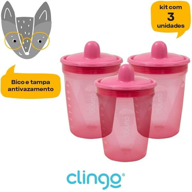 Kit 3 Copos de Transição Clingo Rosa 6M+ 250ML