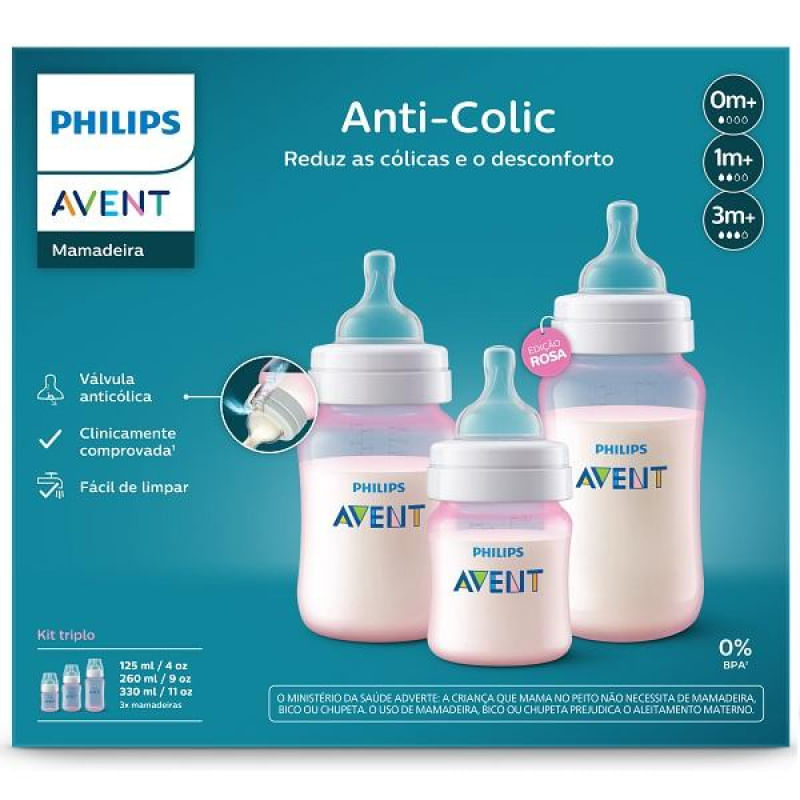 Mamadeira Anti-Colic , sistema anticólicas com eficácia comprovada na redução de cólicas causadas pela ingestão de ar.