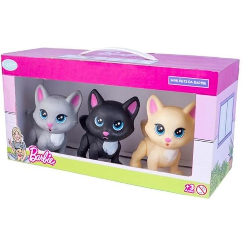 Apresente a magia dos Mini Pets da Barbie com o Kit com 3 Minis Gata Cinza Preto e Creme.