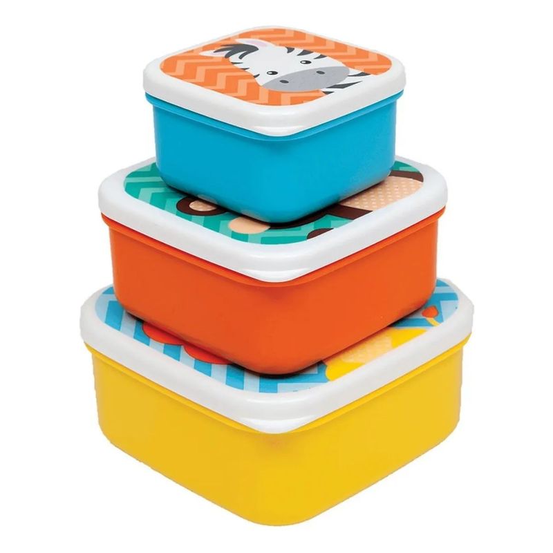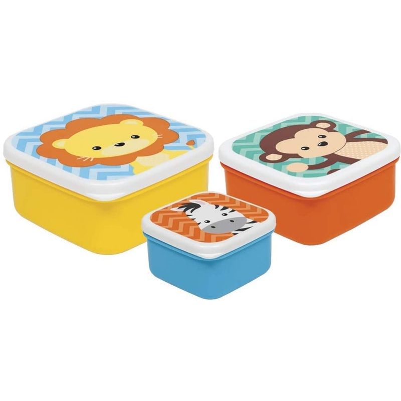 Kit 3 Potinhos Animais Porta Biscoito Lanchinho Papinha Buba