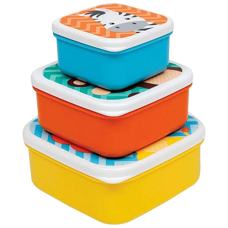 Com 3 potinhos, tampas decoradas com encantadores desenhos e em tamanhos de 100ml, 250ml e 400ml, podem ir ao freezer, micro-ondas e lava-louça, além de serem livres de BPA e Ftalatos, práticos e seguros.