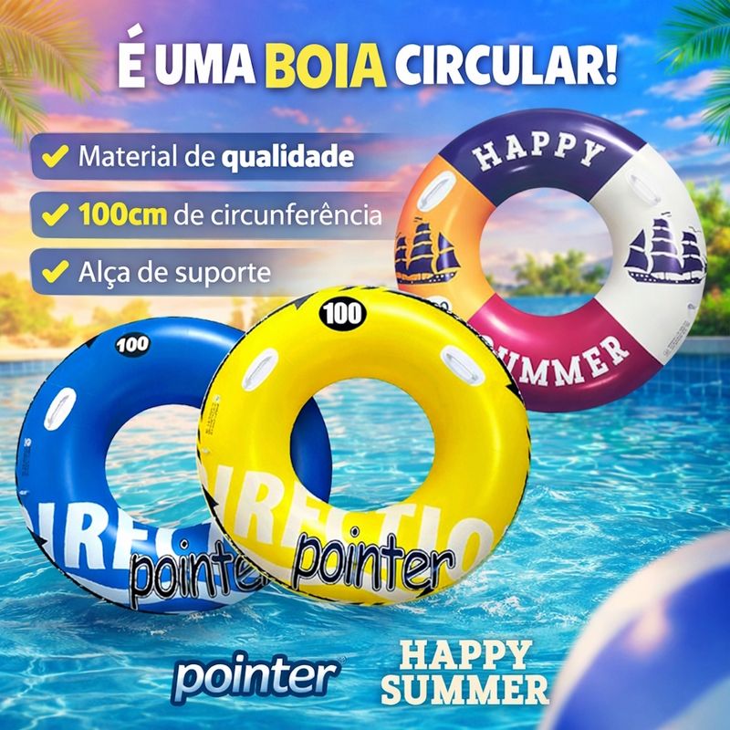 Boia Redonda Inflável Rosquinha Grande 100cm de Diâmetro para Piscina e Praia com hastes para segurar