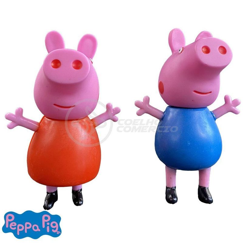 Conteúdo: Bonecos George Pig 10cm, Peppa Pig 10cm, Mamae pig 12cm, Papai pig 12cm