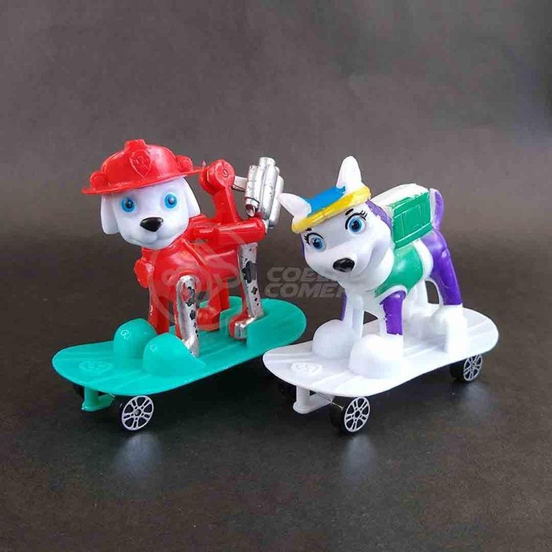 Kit 4 Bonecos Brinquedos Patrulha Canina Com Skate 8cm - Marshall, Everest, Zuma, Robo Dog