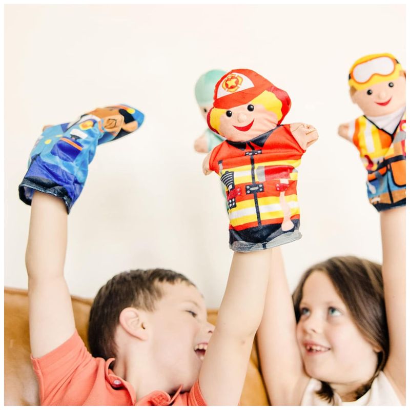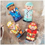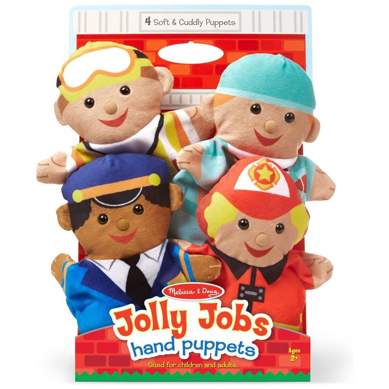 Este conjunto de fantoches de mão Melissa Doug Jolly Helpers contém 4 bonecos de luva simples, incluindo um trabalhador da construção civil, médico, policial e bombeiro. Feitos com tecidos laváveis e com estampas brilhantes, são ideais para ajudar crianças e cuidadores a brincarem juntos e representar cenas, praticar novo vocabulário e passar bons momentos juntos. Além disso, os fantoches são ótimos para desenvolver habilidades motoras e autoconfiança.