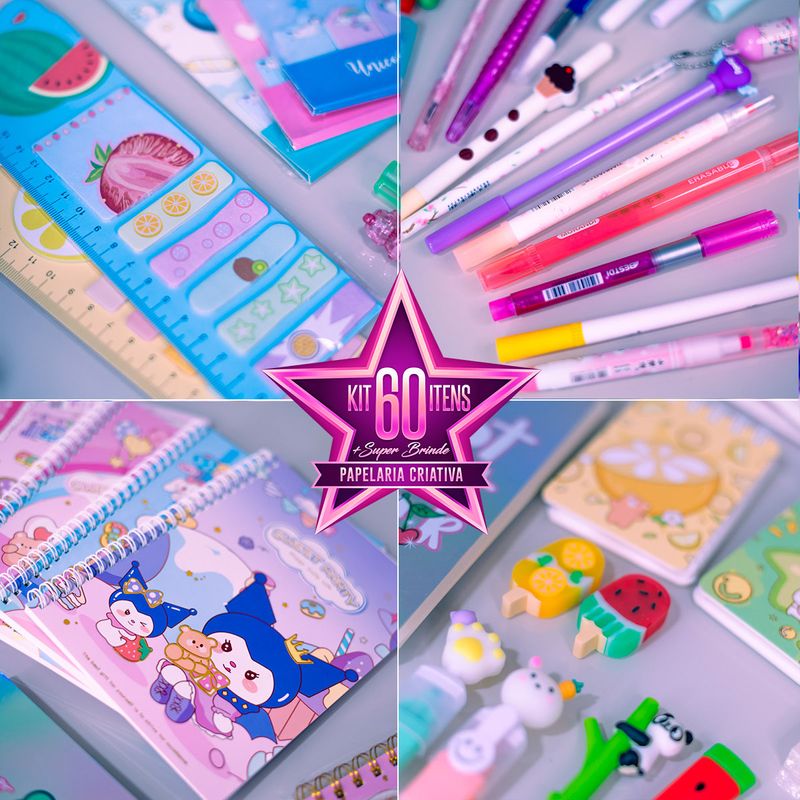 DreamyBox 60 Itens Kawaii – Edição EspecialUma explosão de fofura, criatividade e encanto em uma caixa mágica!Surpreenda com a DreamyBox 60 Itens, uma das edições mais completas e encantadoras da Planeta Kawaii. Cada detalhe foi pensado para proporcionar uma experiência única, ideal para quem ama papelaria fofa e cheia de estilo.Perfeita para aniversários, formaturas, datas especiais ou para presentear com carinho em qualquer ocasião.O que vem na sua DreamyBox – 60 Itens de Encanto Puro10 Itens Premium: