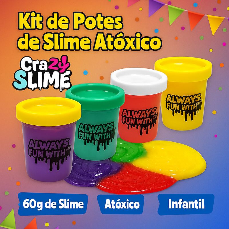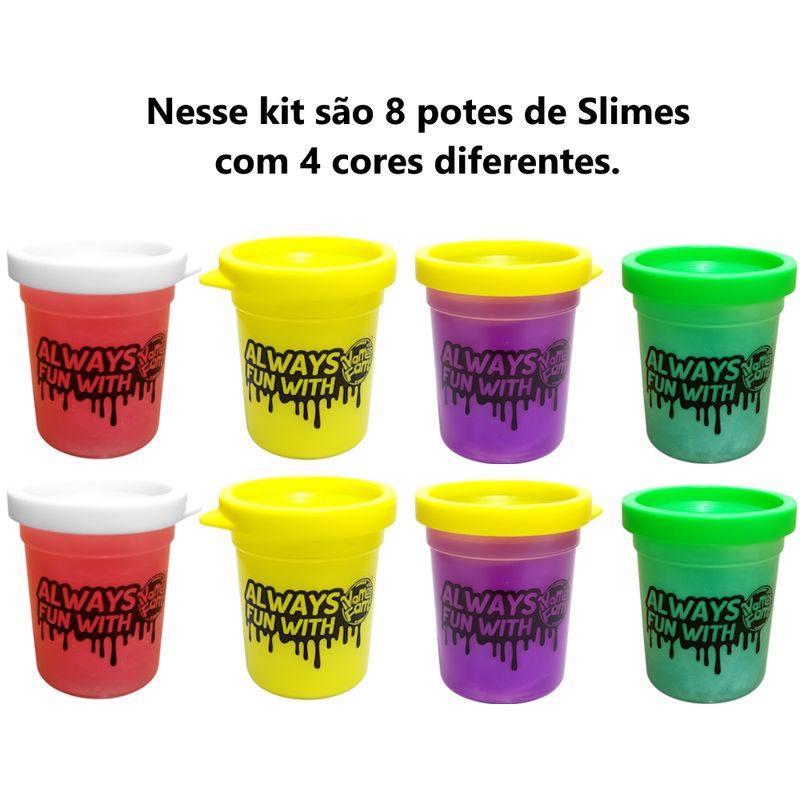 Kit com 8 Potes de Slimes Crazy Infantil Atóxico para Lembrança de Aniversário e Sacola Surpresa