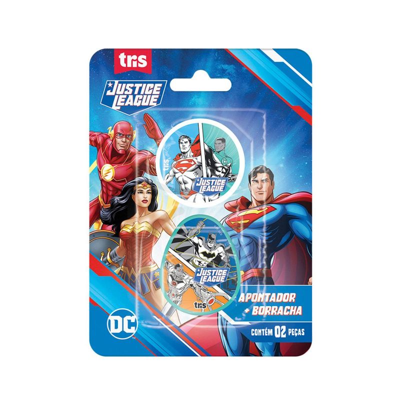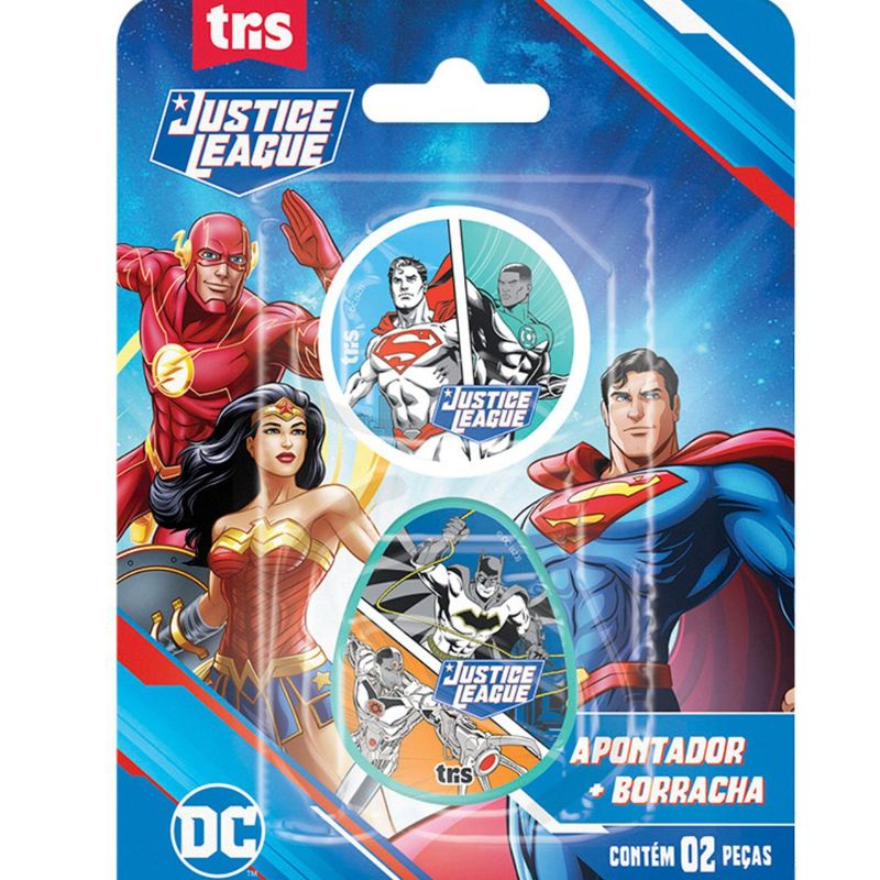 KIT APONTADOR COM DEPOSITO + BORRACHA LIGA DA JUSTIÇA - TRIS