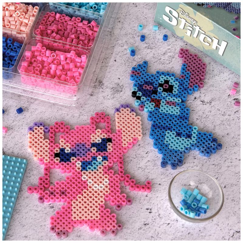 Crie os personagens Stitch e Angel da Disney em várias poses e cenários com este kit de artesanato de contas fusíveis da Perler. Com 4225 contas, quadrado grande interligado, folha de padrão com instruções e papel para passar, o kit vem com tudo que você precisa para fazer os 10 projetos incluídos no conjunto.