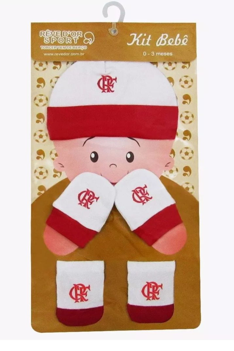 Kit Bebê 3 Pçs Flamengo Touca Luva e Meia Oficial Esse lindo é perfeito para presentear o seu bebê, com as primeiras peças do Flamengo. Composta por 100% de algodão antialérgico, ideal para deixar o seu bebê com as cores do Flamengo desde os primeiros dias de vida. Conteúdo do Kit: Um par de luvas, um par de meias e uma touca, todos com o escudo do time. Tamanho: Único 0-3 Meses Detalhes
