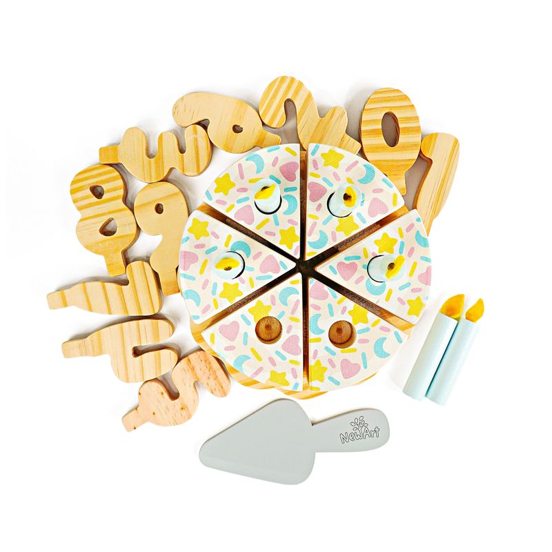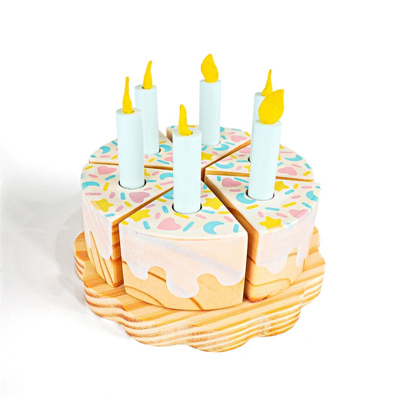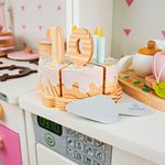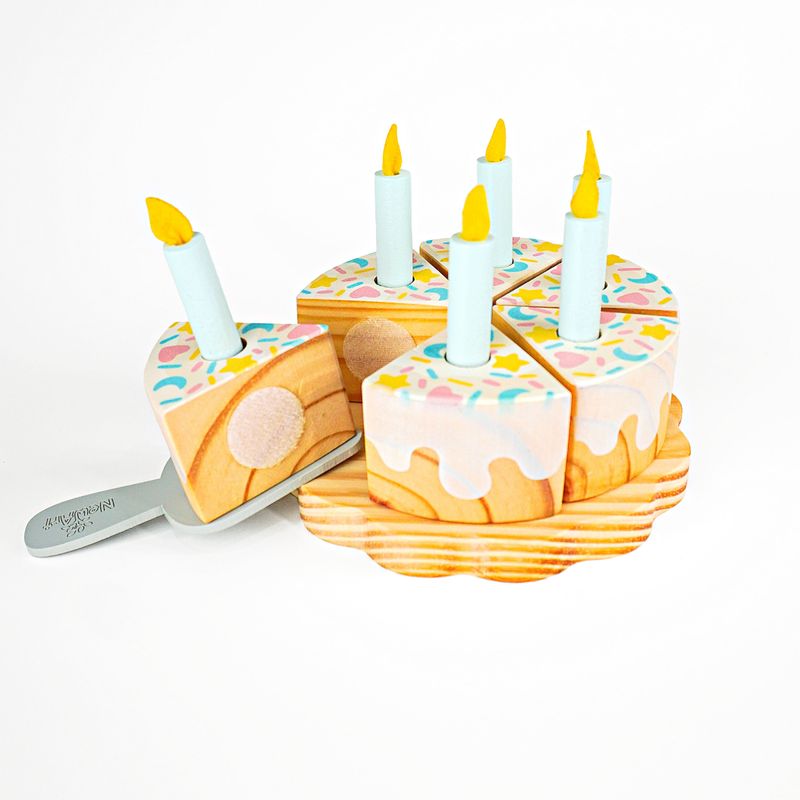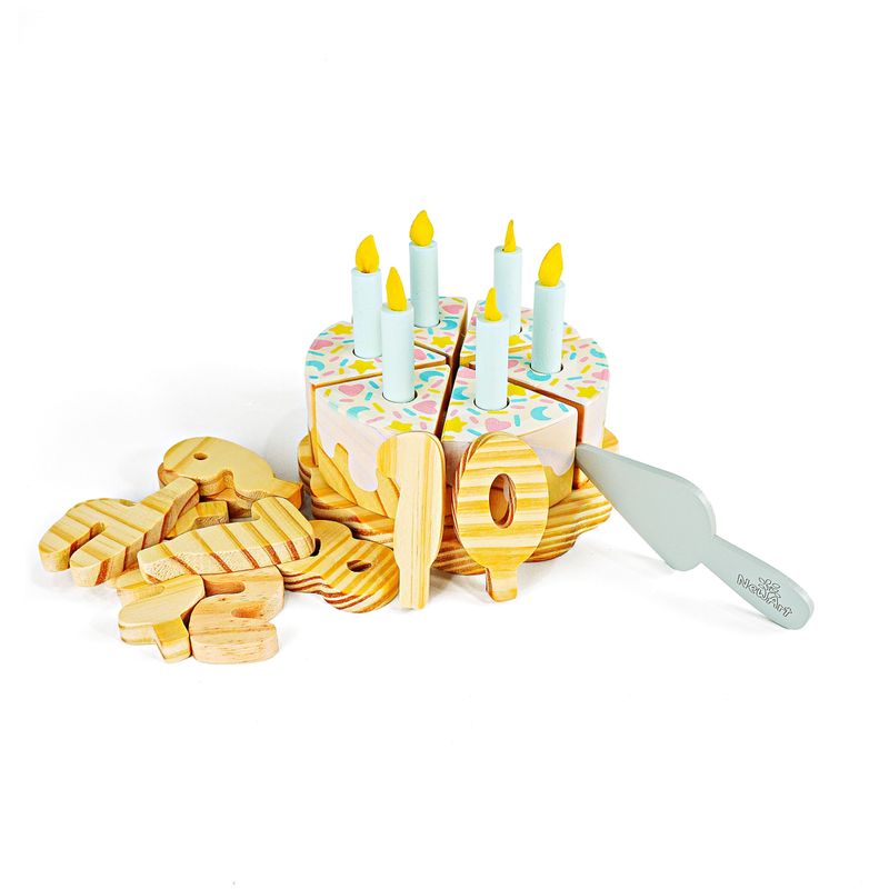 KIT BOLO DE ANIVERSÁRIO DE CHOCOLATE BRANCO EM MADEIRA Uma comemoração delicada para brincar, criar e imaginar! O Bolo de Aniversário de Chocolate Branco é aquele convite irresistível para o faz de conta ganhar vida todos os dias. Com base em formato de pratinho e cobertura branca decorada com confetes coloridos de lua, coração e estrela, ele transforma qualquer brincadeira em uma festa cheia de carinho. As crianças podem montar o bolo, escolher o número do aniversário, colocar as velinhas, cantar parabéns, cortar as fatias e servir, vivendo momentos que lembram as celebrações do dia a dia de forma leve. APRENDIZADO COM DIVERSÃO Estimula a coordenação motora, a imaginação, a criatividade e as habilidades sociais por meio do brincar simbólico. BRINCADEIRA INTERATIVA As fatias podem ser “cortadas” e unidas com sistema tipo velcro, permitindo montar e desmontar o bolo, servir no prato, usar a espátula e criar histórias cheias de afeto. MADEIRA RESISTENTE Fabricado 100% em madeira, com acabamento encantador e durabilidade para muitas festas de faz de conta. Transforme qualquer dia em motivo para celebrar com um brinquedo educativo, encantador e feito para criar memórias felizes na infância.