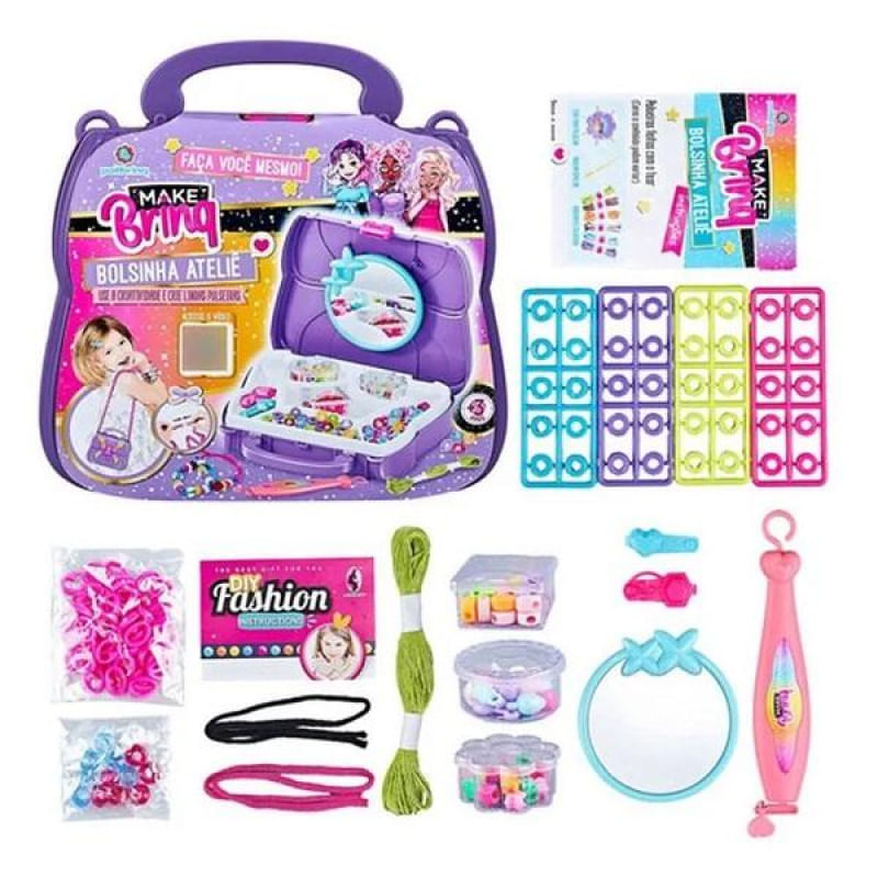 Com o kit Bolsinha Ateliê Makebrinq da Polibrinq as pequenas vão montar diversas pulseiras e deixar a diversão ainda mais especial.