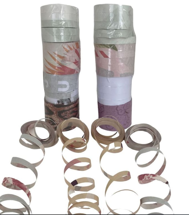 Conteúdo: 1 PACOTE COM 20 ROLINHOS de serpentina de fibra reciclada estampada.