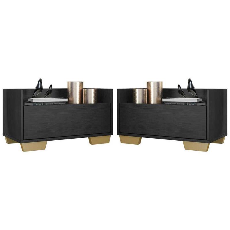 CASAMÓVEIS E ACESSÓRIOSKit c/ 2 Mesas de Cabeceira 60 cm c/ Pés Quadrados Multimóveis Preta/Natural