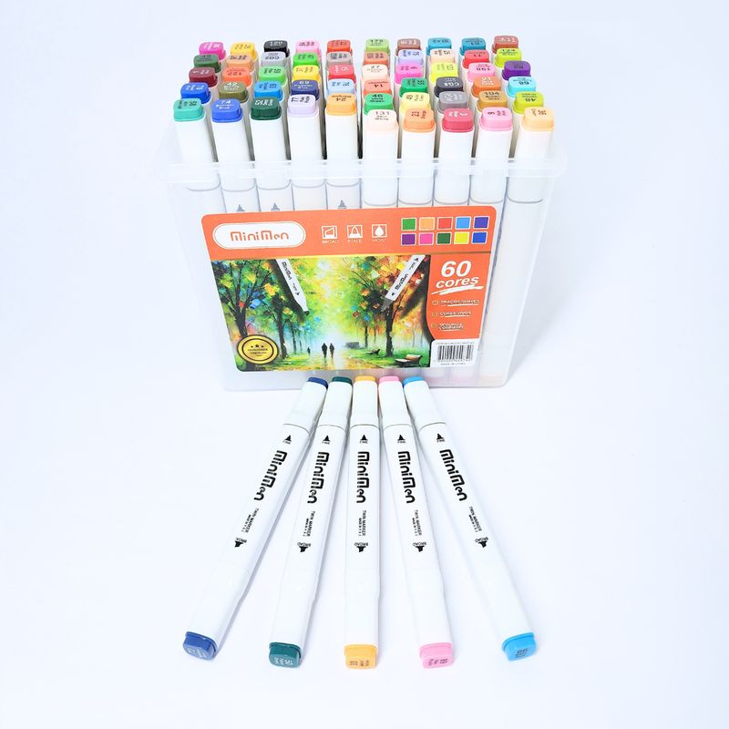 • Canetas com ponta dupla: chanfrada para preenchimento e fina para detalhes