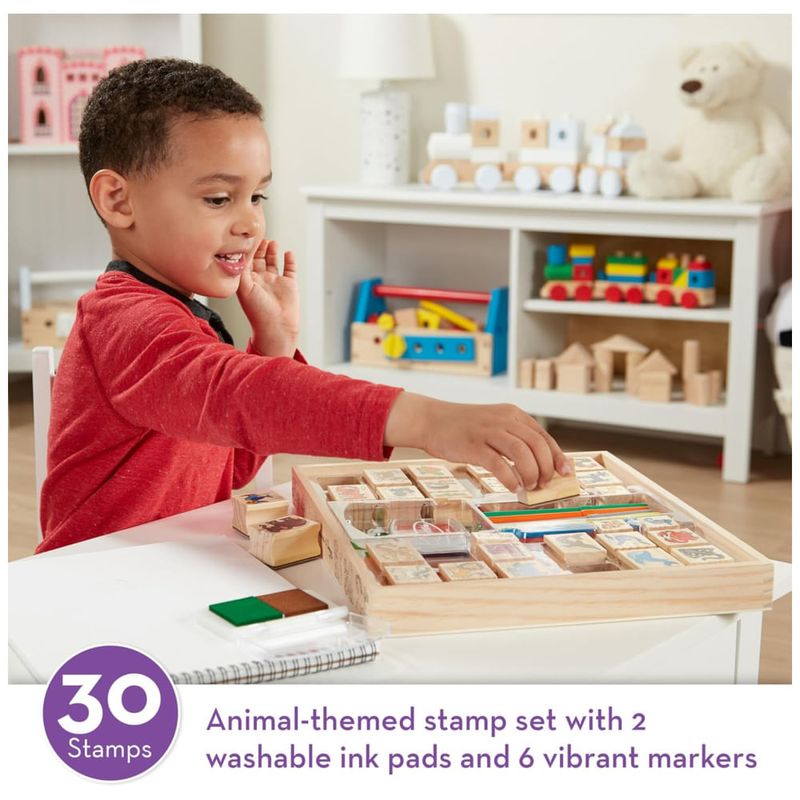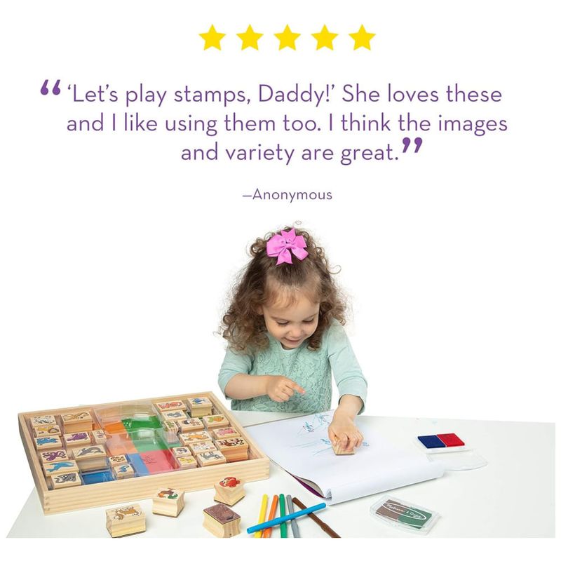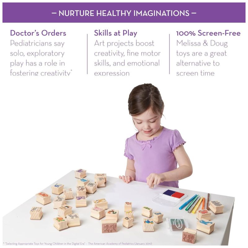 O conjunto de carimbos de madeira Deluxe é um presente encantador e educativo para crianças a partir de 4 anos. Adicione o Melissa Doug Rainbow Stamp Pad para completar a experiência de jogo criativo e dar às crianças outra opção envolvente para diversão sem tela. Por mais de 30 anos, Melissa Doug criou produtos lindamente projetados que estimulam a imaginação e a criatividade, que a NBC News chamou de padrão ouro nas brincadeiras da primeira infância.