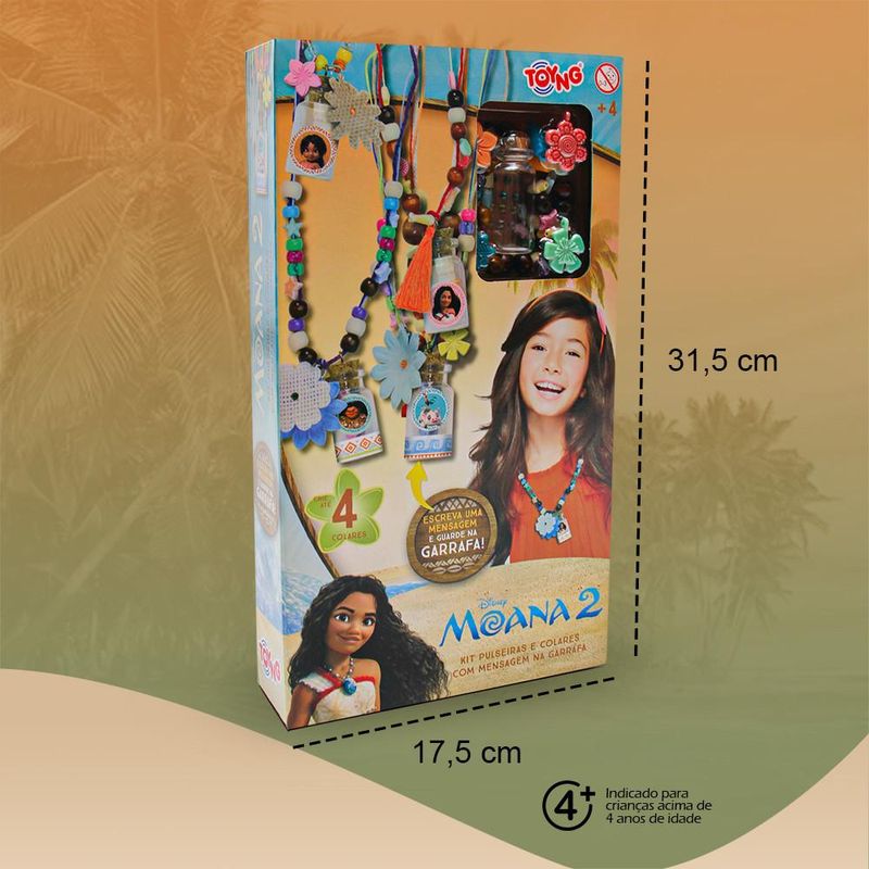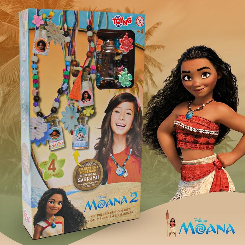 Inspirado na coragem e na magia de Moana, este kit encantador é perfeito para crianças que adoram aventuras e criatividade. Com um colar único, que pode guardar mensagens secretas em uma "garrafa mágica", o conjunto é ideal para presentear ou tornar qualquer dia mais especial.