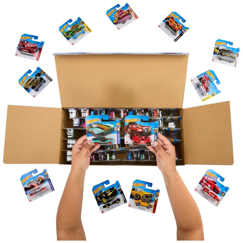 A cada ano, são lançadas diferentes mixagens com novas seleções em cada uma delas. Os estilos, cores e decorações podem variar, tornando cada conjunto único. Este conjunto básico de 50 carros Hot Wheels em escala 164 é perfeito para qualquer ocasião e vem em embalagens individuais. Além disso, os 50 carros vêm em uma caixa da marca Hot Wheels, ótima para guardar carros, com um pôster da coleção Hot Wheels 2010.