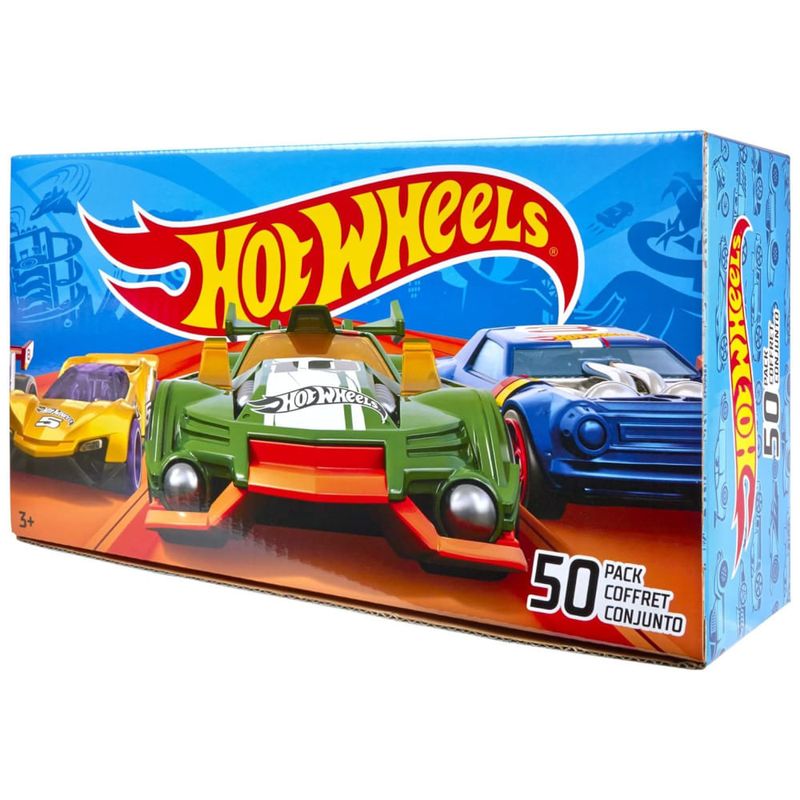 Adquira um incrível conjunto de 50 veículos Hot Wheels em escala 1:64 para iniciar ou expandir sua coleção. Cada carro, caminhão ou motocicleta vem embalado individualmente para aumentar a coleção ou distribuir como uma lembrancinha especial. Este conjunto vem em uma caixa da marca Hot Wheels, o que o torna um presente impressionante para crianças a partir de 3 anos e colecionadores.