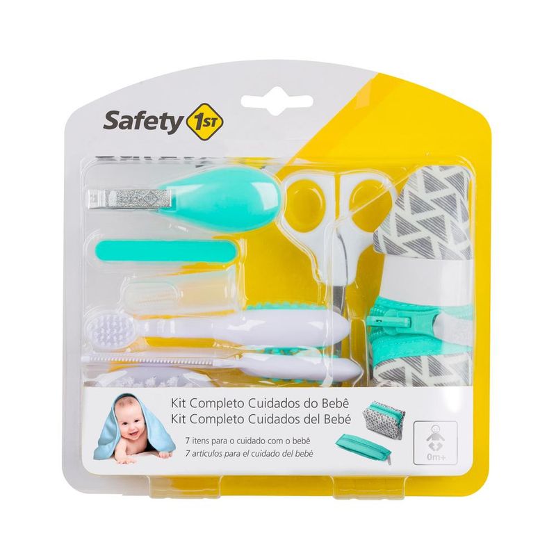 O Kit Completo da Safety 1st facilita a rotina de cuidados com bebê ao reunir diversos itens essenciais: escova de cabelo, pente, escova massageadora de gengivas em silicone, escova de dentes, tesoura, cortador e lixas de unha.