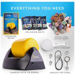 KIT DE TUMBLING TUDO EM UM Este kit tem tudo que você precisa e mais um pouco. Você recebe meio quilo de pedras ásperas com nove tipos diferentes de pedras preciosas dentro, cinco fechos de joias e nosso grão de polimento de rocha de quatro estágios.