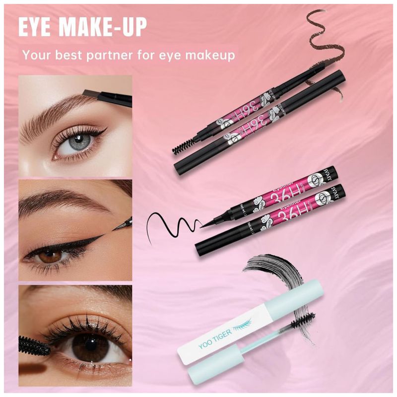 O Kit Completo de Maquiagem Venshun All-in-One organiza 18 itens essenciais em embalagem compacta com dimensões de 21,1 x 14,2 x 6,5 cm, projetado para portabilidade em viagens ou uso cotidiano. Inclui escova facial para limpeza, base líquida, spray fixador, lápis para sobrancelhas, máscara para cílios, delineador, corretivo, lápis labial, 2 gloss labiais, paleta de batons, paleta multifuncional, esponja para pó e 8 pincéis cosméticos para aplicação controlada.