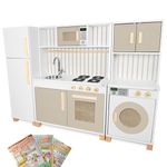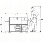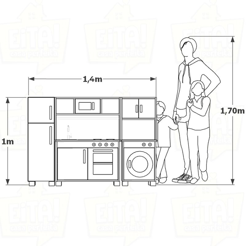 DIMENSÕES DA COZINHA Confira as medidas para o seu espaço. Dimensão Medida Largura 72 cm Altura 100 cm Profundidade 30 cm Peso 19 kg DIMENSÕES DA GELADEIRA Medidas ideais para a brincadeira. Dimensão Medida Largura 30 cm Altura 100 cm Profundidade 30 cm Peso 10 kg DIMENSÕES DA MÁQUINA DE LAVAR Confira as medidas para o seu espaço. Dimensão Medida Largura 38 cm Altura 100 cm Profundidade 30 cm Peso 10 kg A máquina de lavar simula painel digital, possui botões que giram e portinhas funcionais, referenciando modelos de tombamento com visualização interna circular. VÍDEO DEMONSTRATIVO Assista ao vídeo para ver os detalhes deste produto. (Não acompanha itens decorativos. Ex.: panelinhas, vasinhos, batedeira). Produto enviado desmontado; montagem simples e rápida.