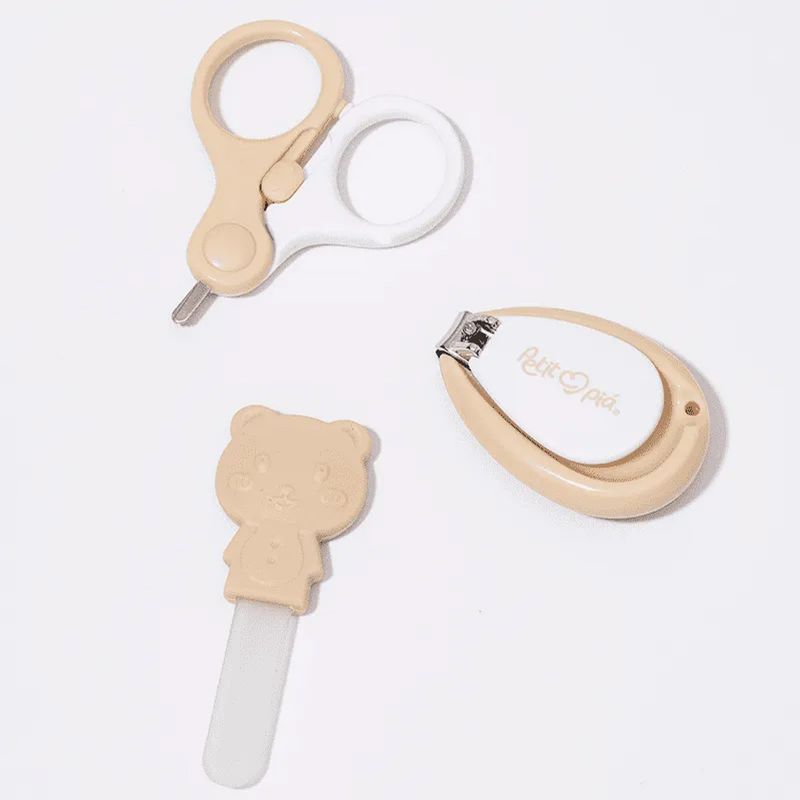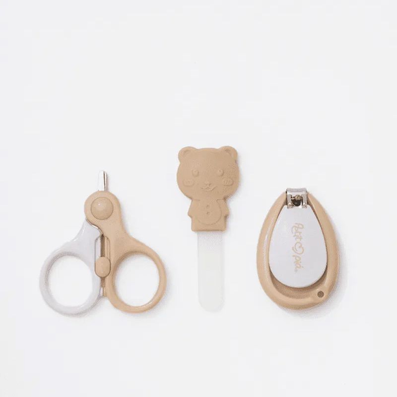 Segurança: A segurança é garantida com materiais livres de BPA e ftalatos. A tesoura possui pontas arredondadas para evitar acidentes, e o cortador é projetado para um uso seguro. A lixa tem uma superfície suave para não irritar a pele delicada. Todos os itens são seguros para o contato com a pele sensível do bebê.