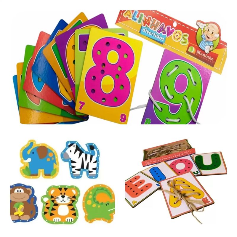 Kit De Alinhavos Numerais + Vogais + Animais