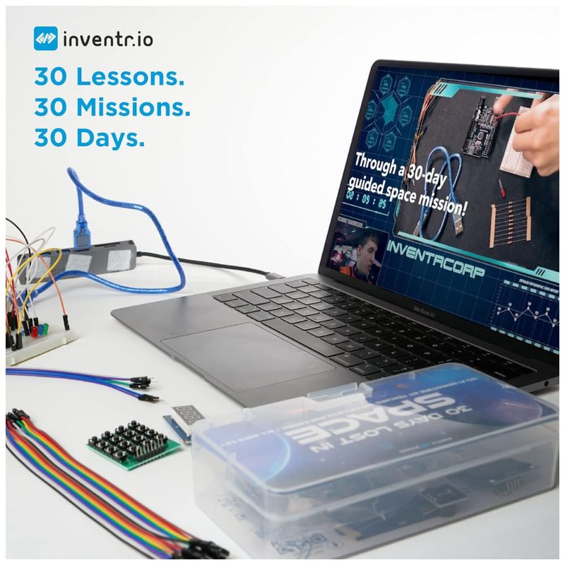 Entre em uma jornada educacional emocionante com o Adventure Kit 30 Days Lost In Space da inventr.io. Criado por um renomado professor universitário pesquisador da NASA, este kit de placa de circuito eletrônico leva você em uma aventura épica desde um pouso forçado em um planeta alienígena até fazer reparos detalhados tentando voltar para casa. Aprenda codificação, hardware e programação Arduino enquanto conserta painéis de controle danificados, sistemas de segurança, painel solar e sistema de lastro de ar. Com orientação profissional acessível, este kit é perfeito para iniciantes ou fãs de circuitos robóticos avançados. Além disso, as peças reutilizáveis tornam no ideal para projetos em sala de aula ou em grupo. Este kit emocionante é adequado para jovens de 12 anos interessados em desafios, gadgets, codificação, computadores, fiação, matemática e muito mais. Prepare se para uma experiência de aprendizado envolvente e divertida