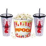 Kit 3 em 1 Pote Balde de Pipocas Clássico Oval 2,1 Litros com 2 Copos Grande Coca-Cola - Plasútil