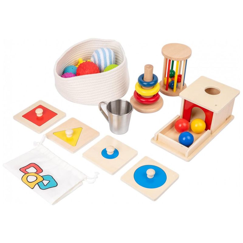 Este kit de jogo inspirado em Montessori é perfeito para bebés com idades compreendidas entre os 6 12 meses que estão apenas a começar a explorar o mundo à sua volta, projetado para apoiar o desenvolvimento cognitivo, físico e sensorial do seu bebê, inclui uma variedade de brinquedos que incentivam a exploração multissensorial e promovem o desenvolvimento da primeira infância.