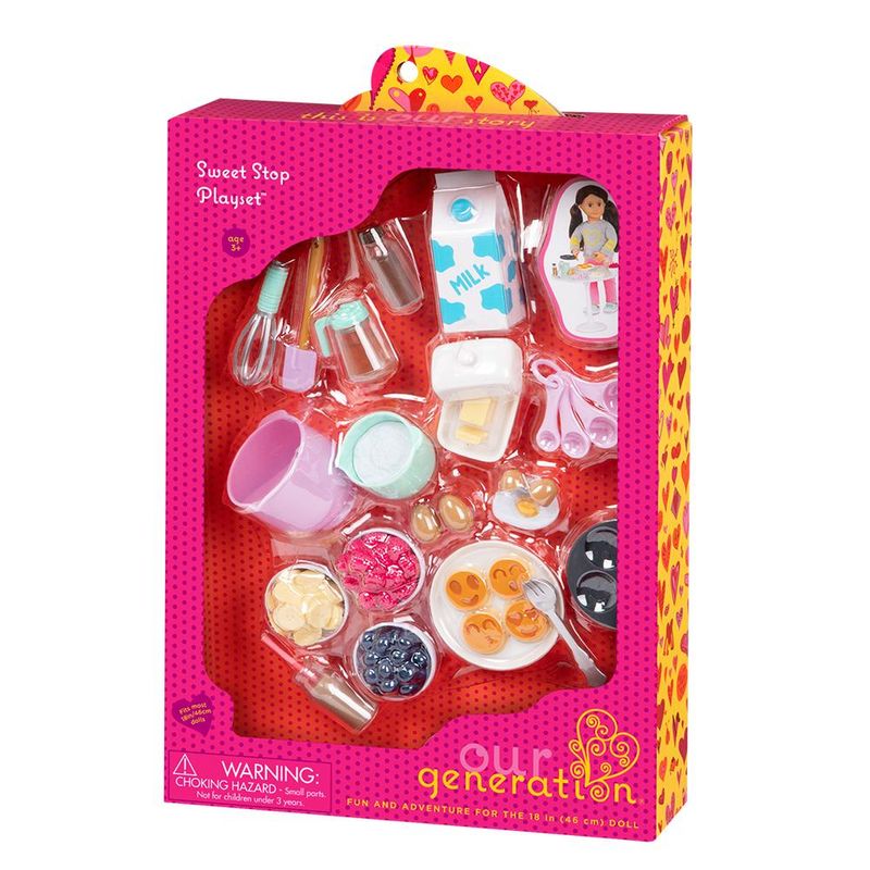 Para começar o dia com guloseimas deliciosas! Comece a manhã da sua boneca de 46cm com o conjunto de café da manhã Our Generation! Este acessório é perfeito para brincar de cozinhar e tem detalhes realistas que tornam a preparação do café da manhã muito divertida! Misture os ovos, o bloco de manteiga, o leite e o extrato de baunilha com o batedor e a espátula; certifique-se de adicionar a quantidade certa com as colheres medidoras! Use a panela para cozinhar as panquecas e, em seguida, vire-as no prato quando terminarem de cozinhar. Adicione coberturas das tigelas de frutas de framboesa, mirtilo e banana fatiada e, em seguida, cubra com uma calda deliciosa – hmmmm! Toda boneca merece começar o dia com um grande café da manhã! Boneca vendida separadamente. Our Generation não se trata apenas de uma boneca, um lindo conjunto de roupas ou mesmo um kit de acessórios fantásticos. É sobre incentivar crianças de todos os estilos e gostos a criar suas próprias histórias, desenvolvendo um universo ilimitado de brincadeiras com bonecas e acessórios. Sua embalagem é feita de material reciclado, especialmente desenvolvida para uma geração mais ecológica que não aceitaria nada menos. Essa é a nossa história, e essa é a nossa turma!